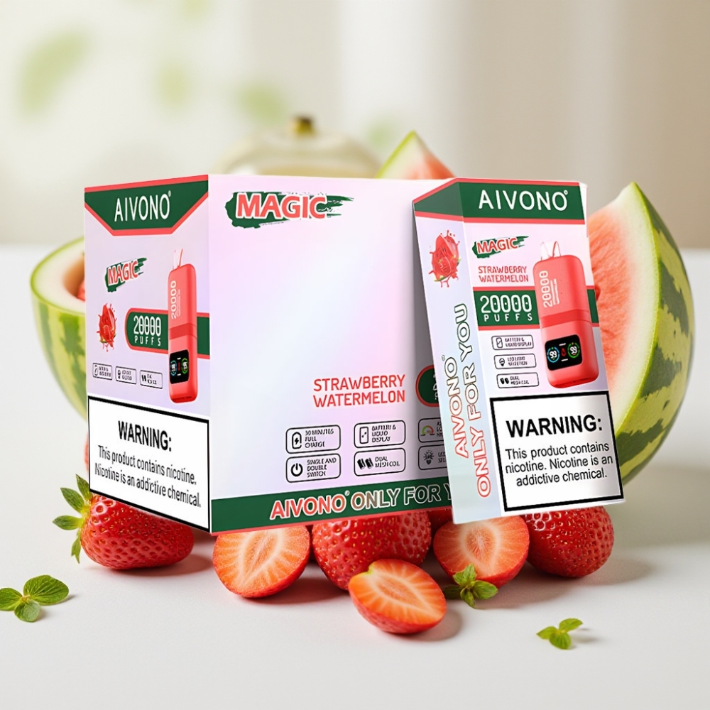 Aivono AIM MAGIC 20000 Puffs Wegwerp Vape Aardbei Watermeloen – 26ml E-liquid, Dual Mesh Coils, LCD-scherm, Type-C Oplaadbaar