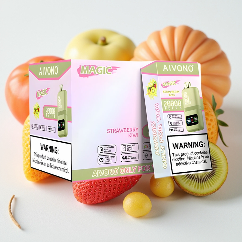 Aivono AIM MAGIC 20000 Puffs Wegwerp Vape met 26ml E-liquid, Dual Mesh Coils, LCD-scherm en aardbei-kiwismaak