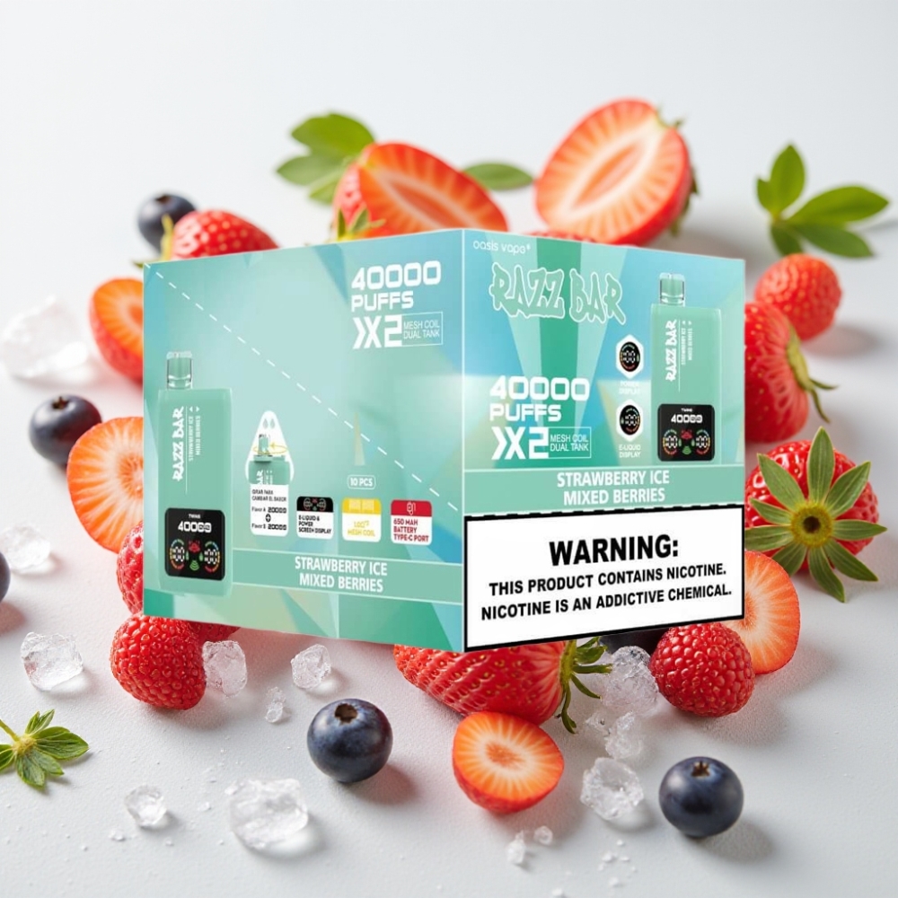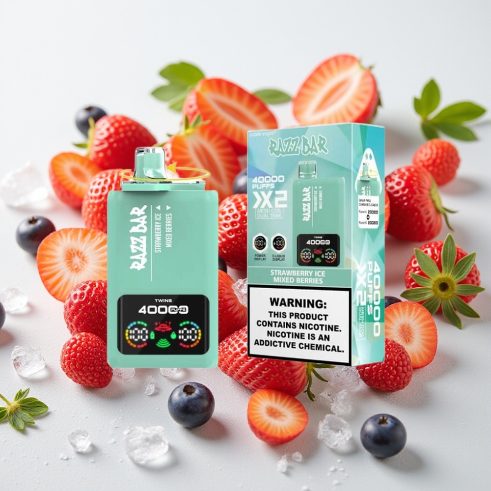 Razz Bar 40000 Puffs Wegwerp Vape AARDBEI IJS & GEMENGDE BESSEN met Power Screen Display, 1.0Ω×2 Mesh Coil en Type-C Poort
