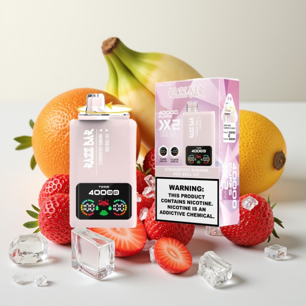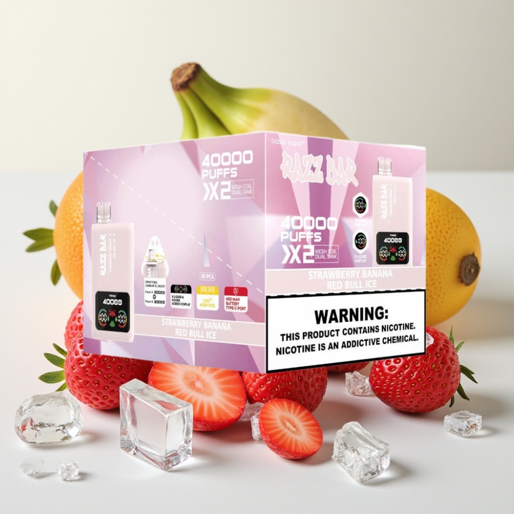 Razz Bar 40000 Puffs Wegwerp Vape met Schermweergave, 1.0Ω×2 Mesh Coil en Aardbei Banaan & Red Bull IJs