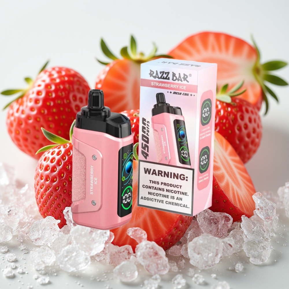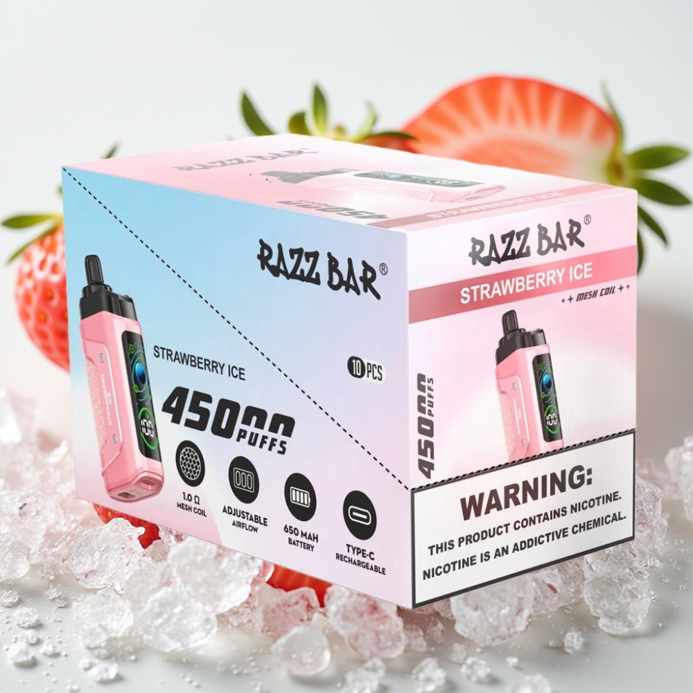 Razz Bar 45000 Puffs Wegwerp Vape Aardbeienijs met 20 mg/ml Nicotine, 1.0 Ohm Mesh Coil en Type-C Oplaadbaar