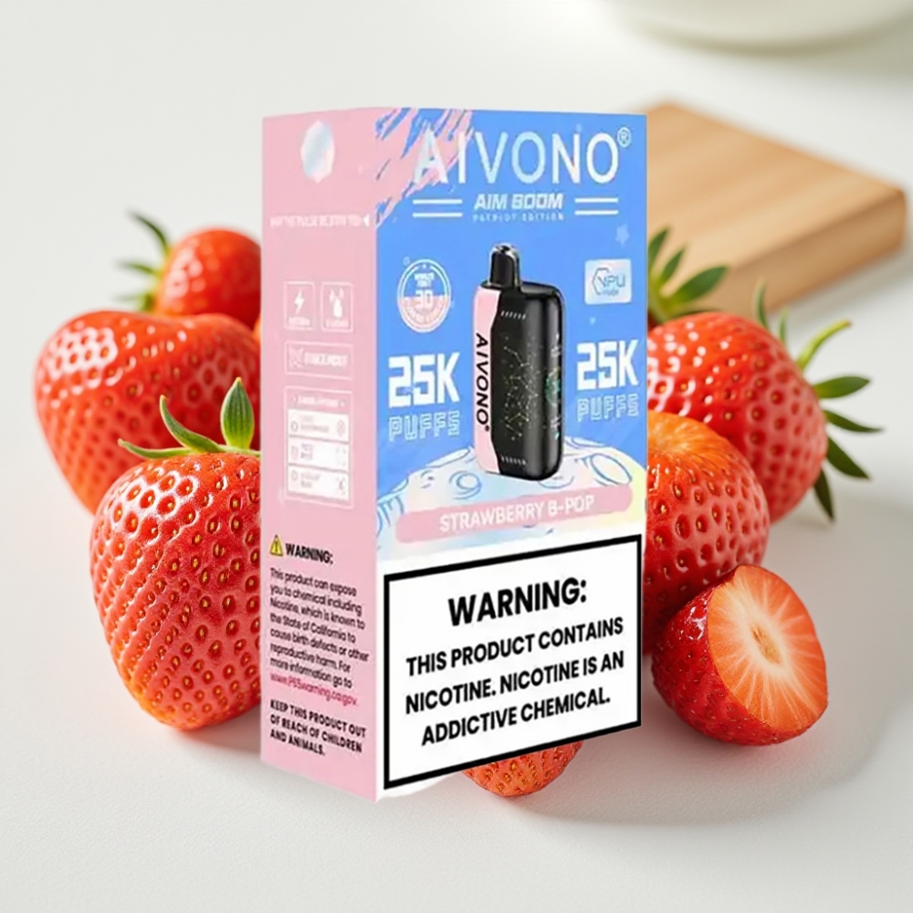 Aivono AIM BOOM 25000 Puffs Wegwerp Vape Aardbei B Pop – 0-5% Nicotine, 650mAh, Type-C