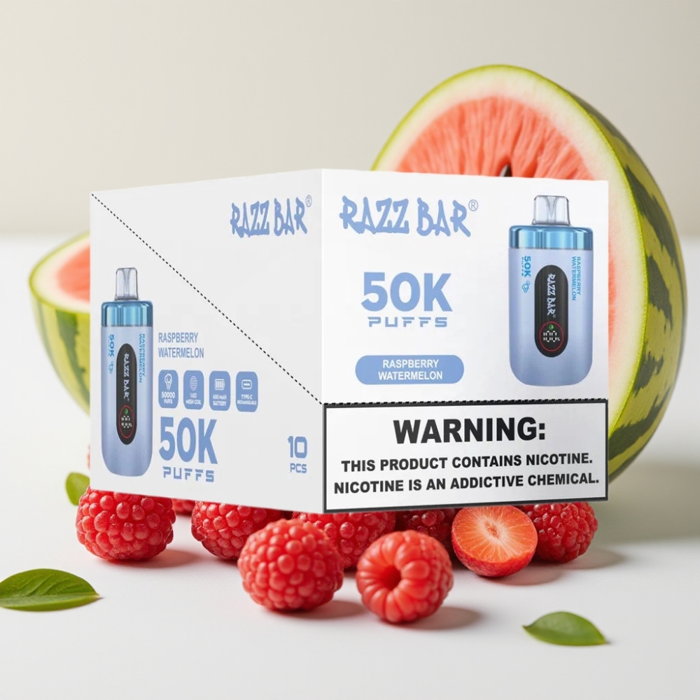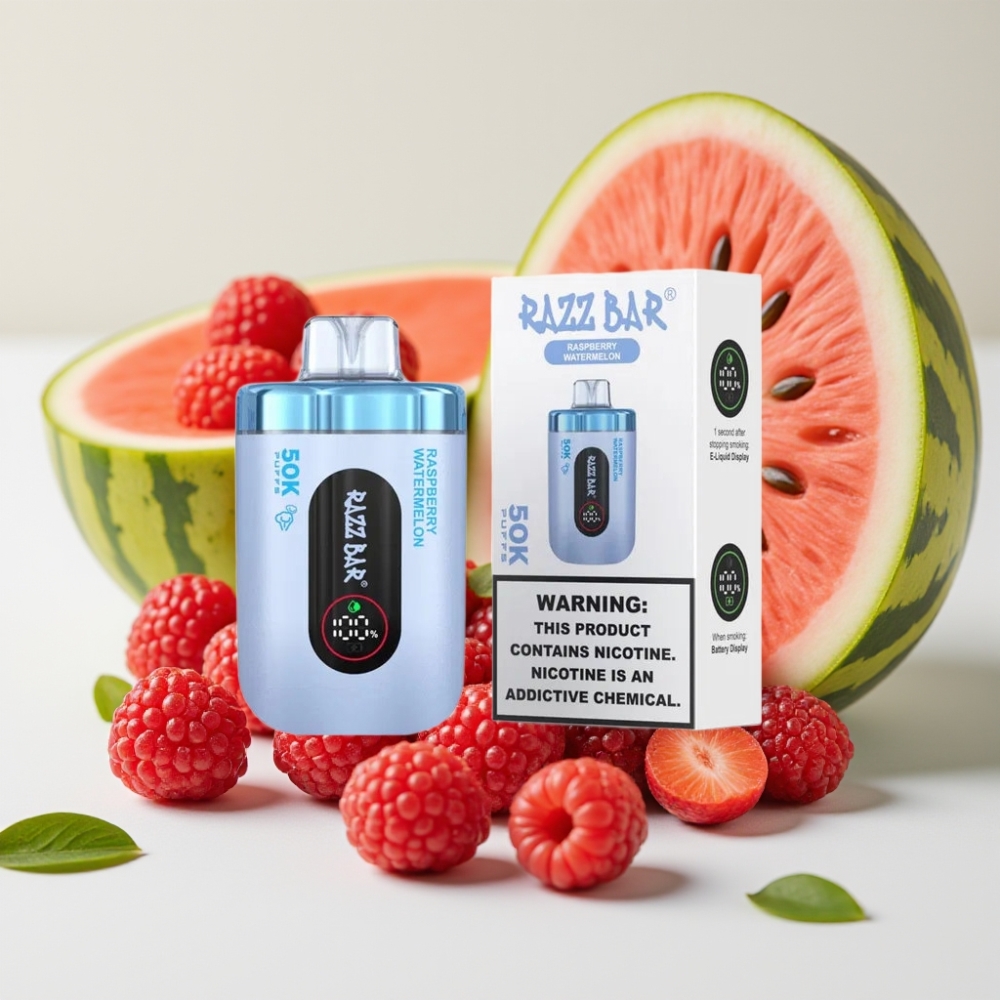 Razz Bar 50K Puffs Wegwerp Vape Framboos Watermeloen – 50000 Puffs, 1.0 Ohm Mesh Coil, Type-C Oplaadbaar, 2% Nicotine