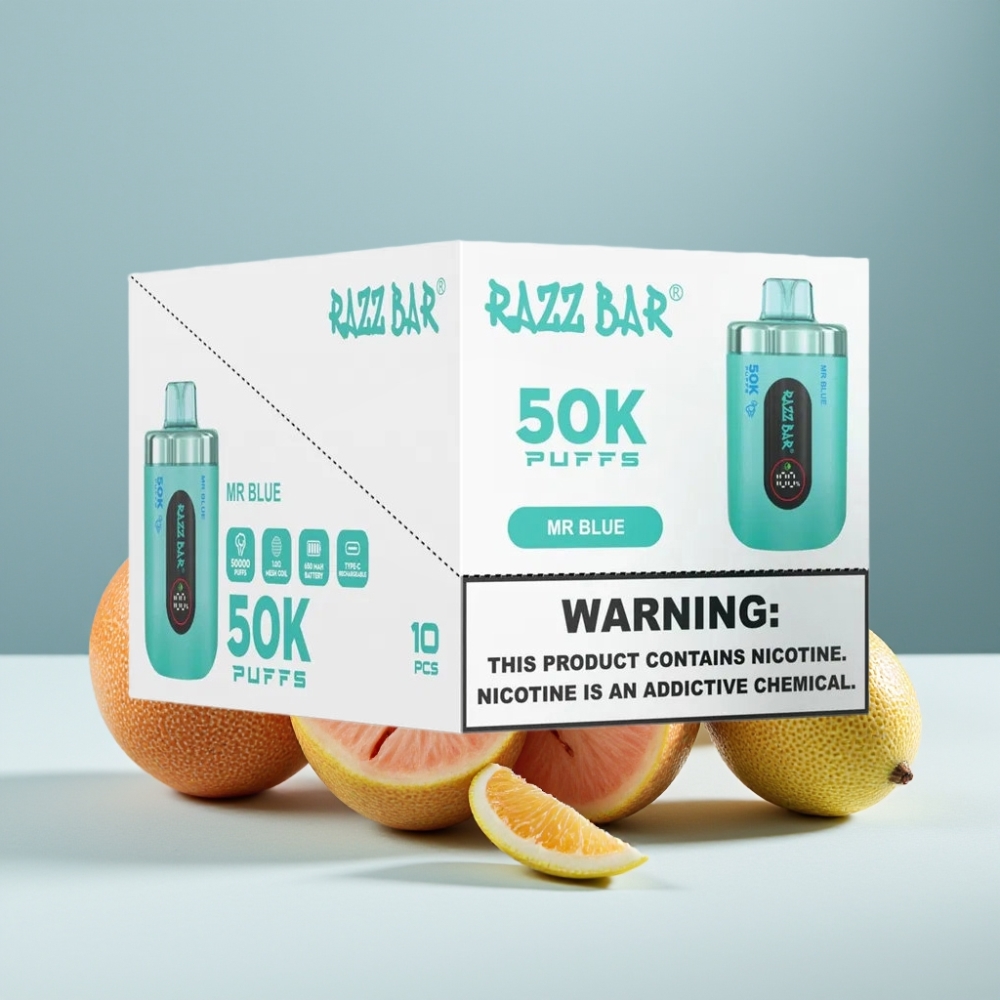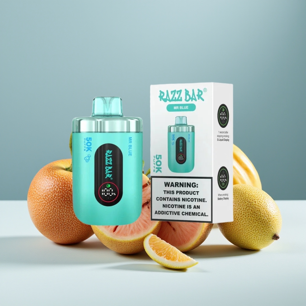 Razz Bar 50K Puffs Wegwerp Vape Mr Blauw – 50000 Puffs, 1.0 Ohm Mesh Coil, Type-C Oplaadbaar