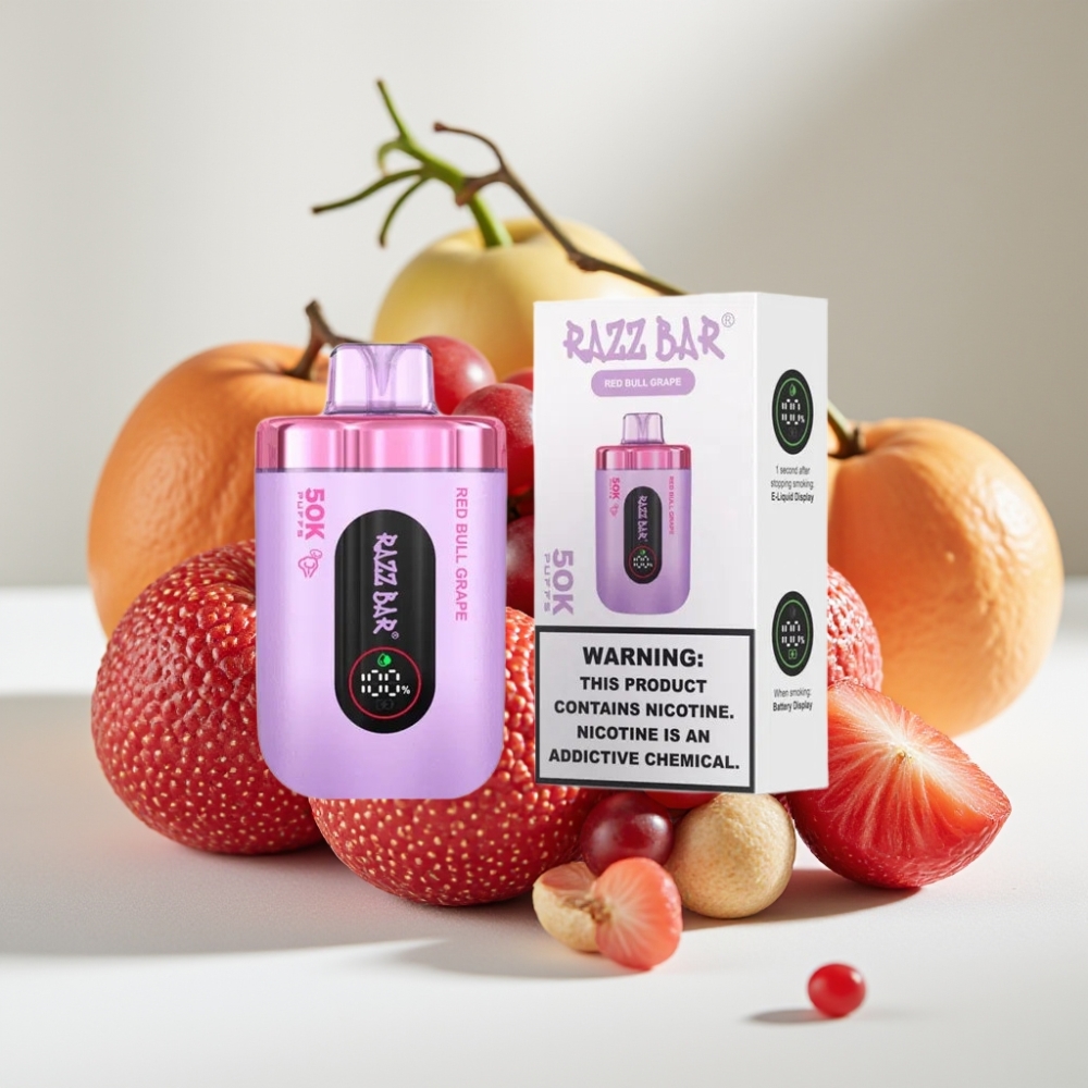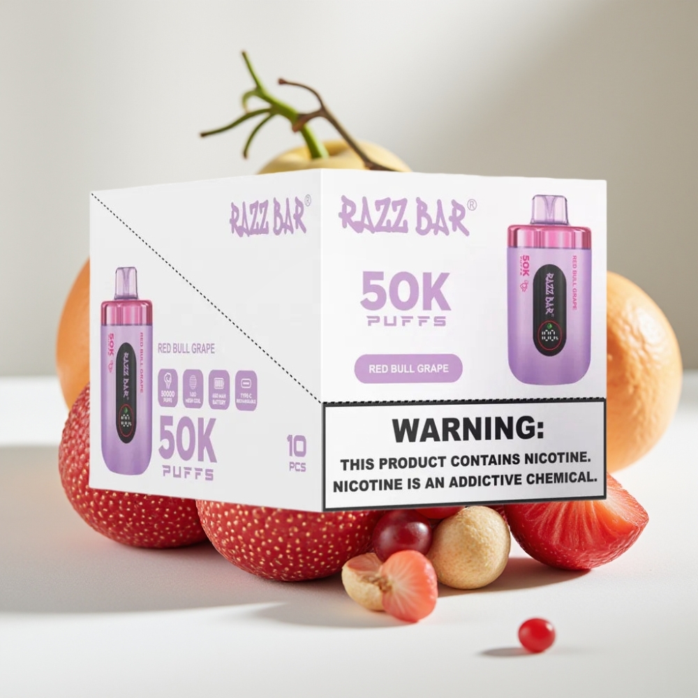 Razz Bar 50K Puffs Wegwerp Vape – Red Bull Druif – 50000 Puffs, 1.0 Ohm Mesh Coil, Type-C Oplaadbaar